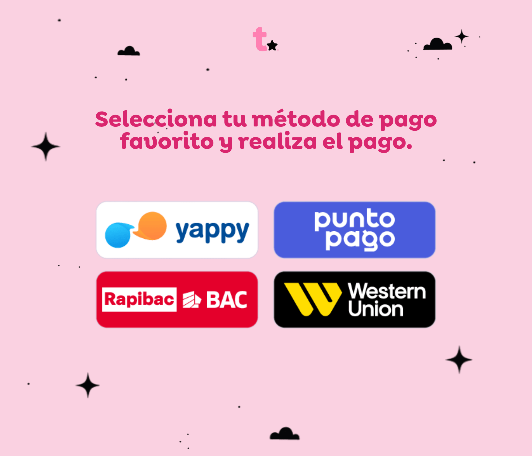 * Puntos de pago autorizados (RapiBac, Western Union, Punto Pago)